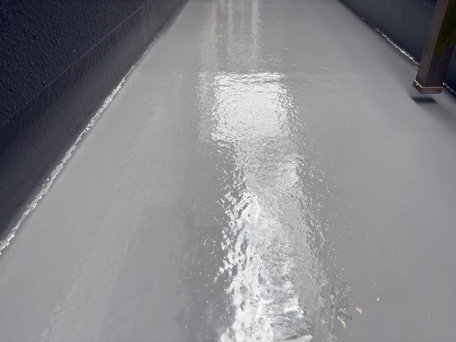 施工方法: 下地にウレタン樹脂を塗布し、乾燥させることで防水層を作ります。