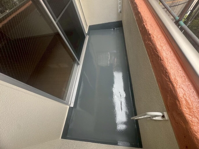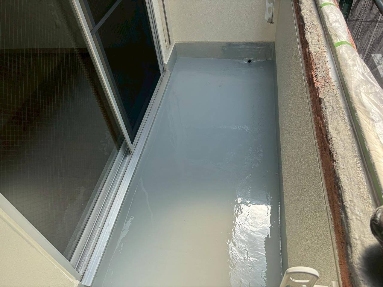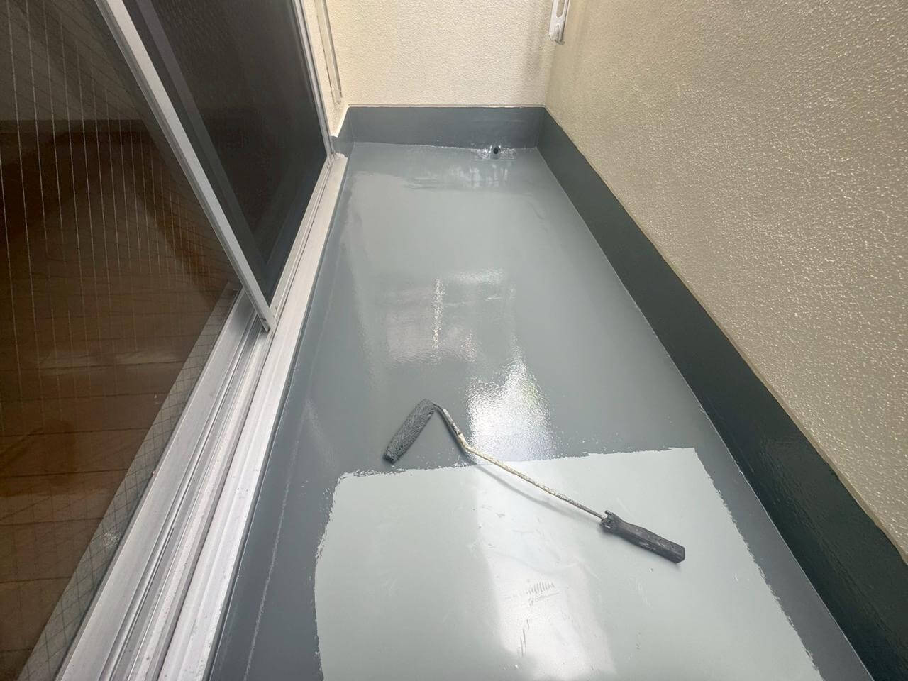 ベランダ防水には、主にグレー色の塗料が塗られているのを見かけることが多いと思います。このグレーの塗装が『トップコート』です。