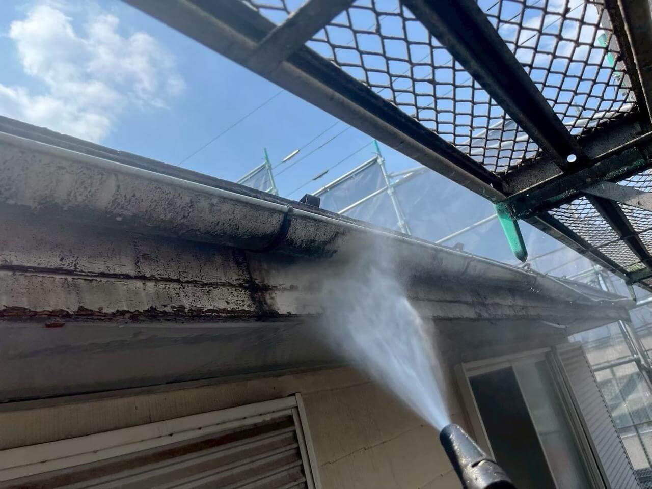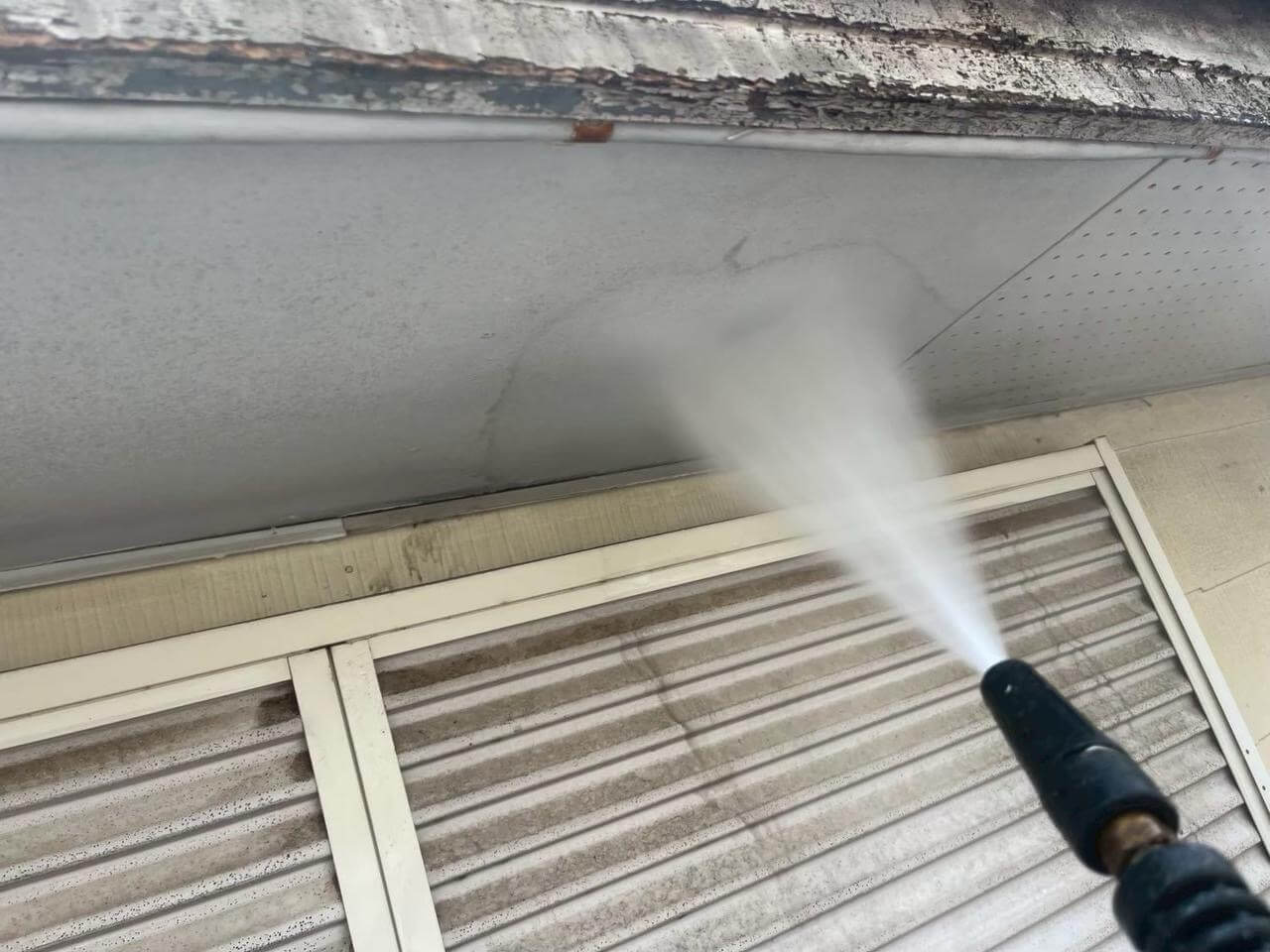 4. 外壁、付帯部と徐々に下へ高圧洗浄を行います