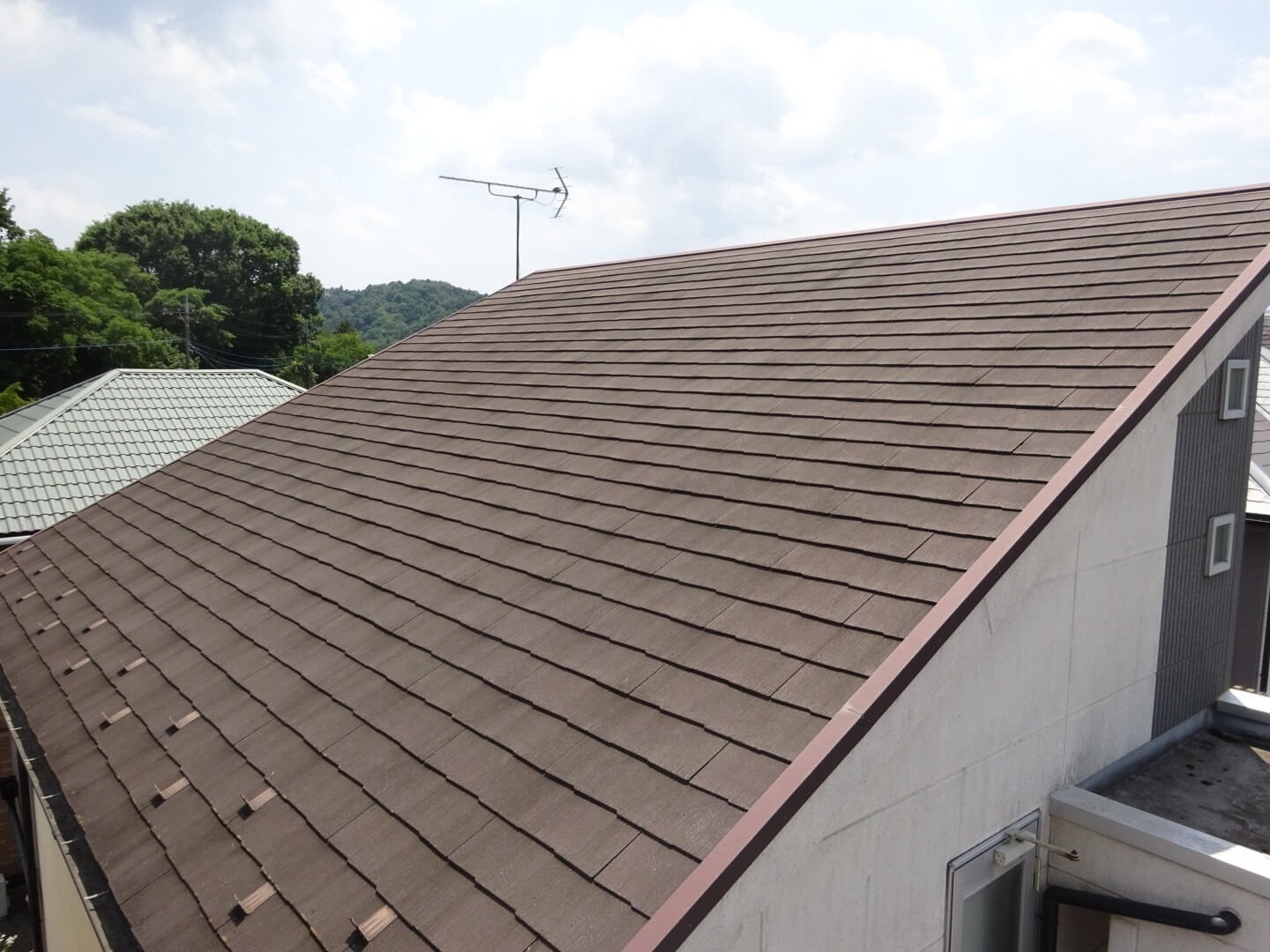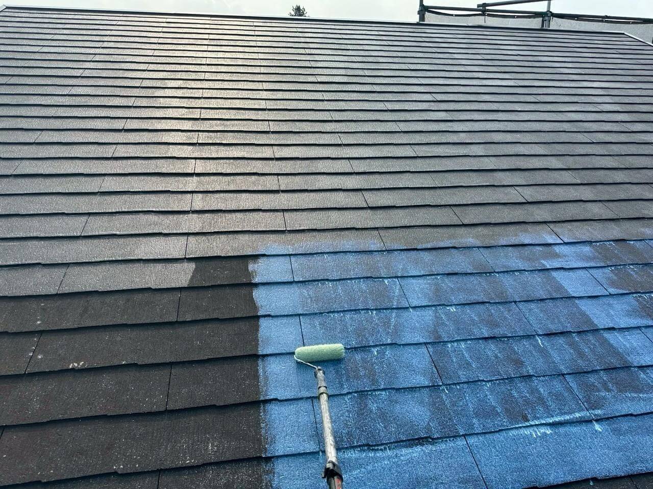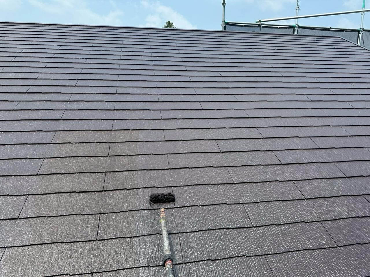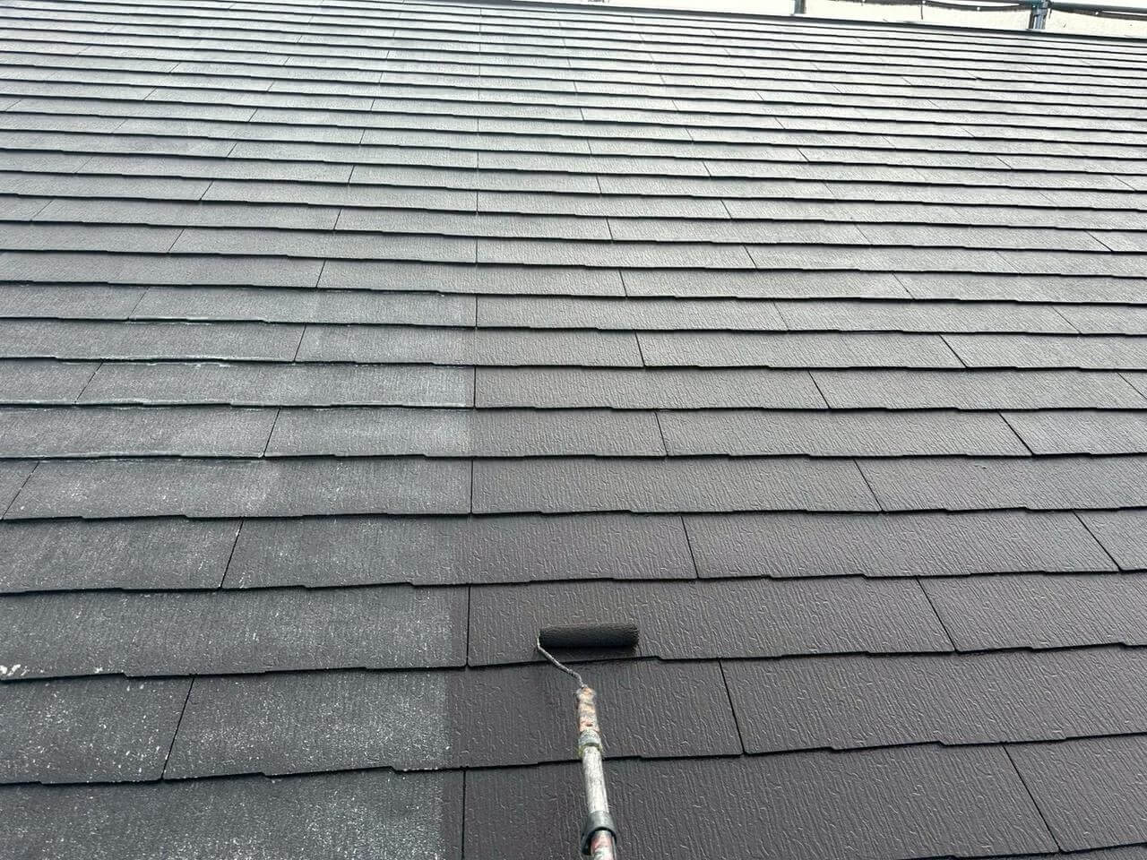 東京都あきる野市小川での屋根塗装工事(グランデ無機・ダークチョコレート)
