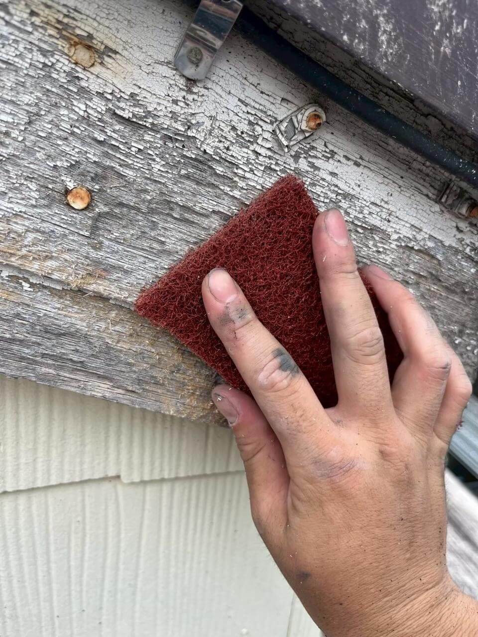 金属系の破風板の場合、サビ止めを塗布してから塗装を行います。