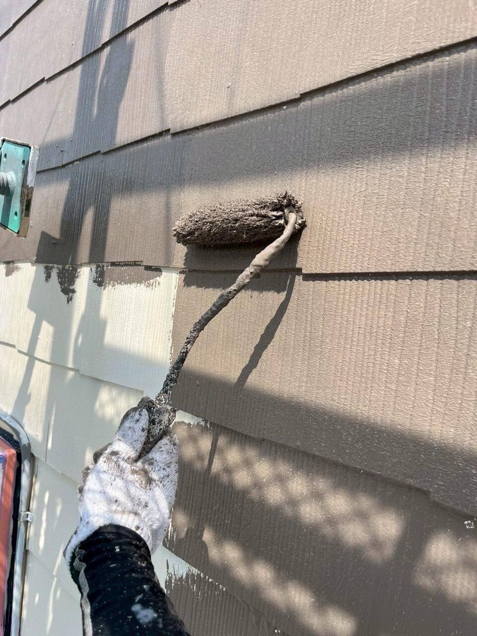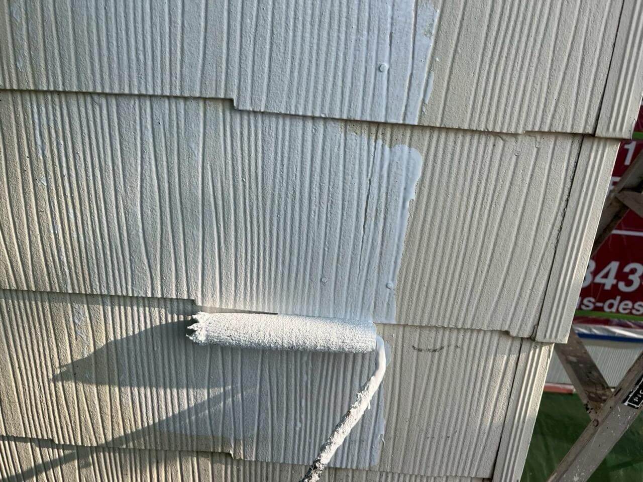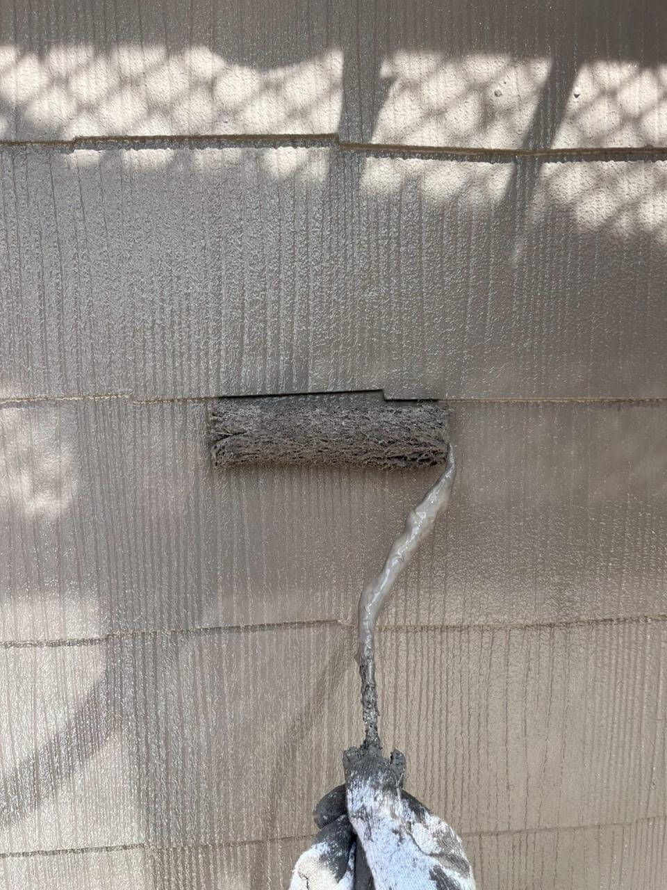今回はALCの外壁のため、ひび割れ防止選定塗料の下塗り塗料(フィラー)を使用いたしました!