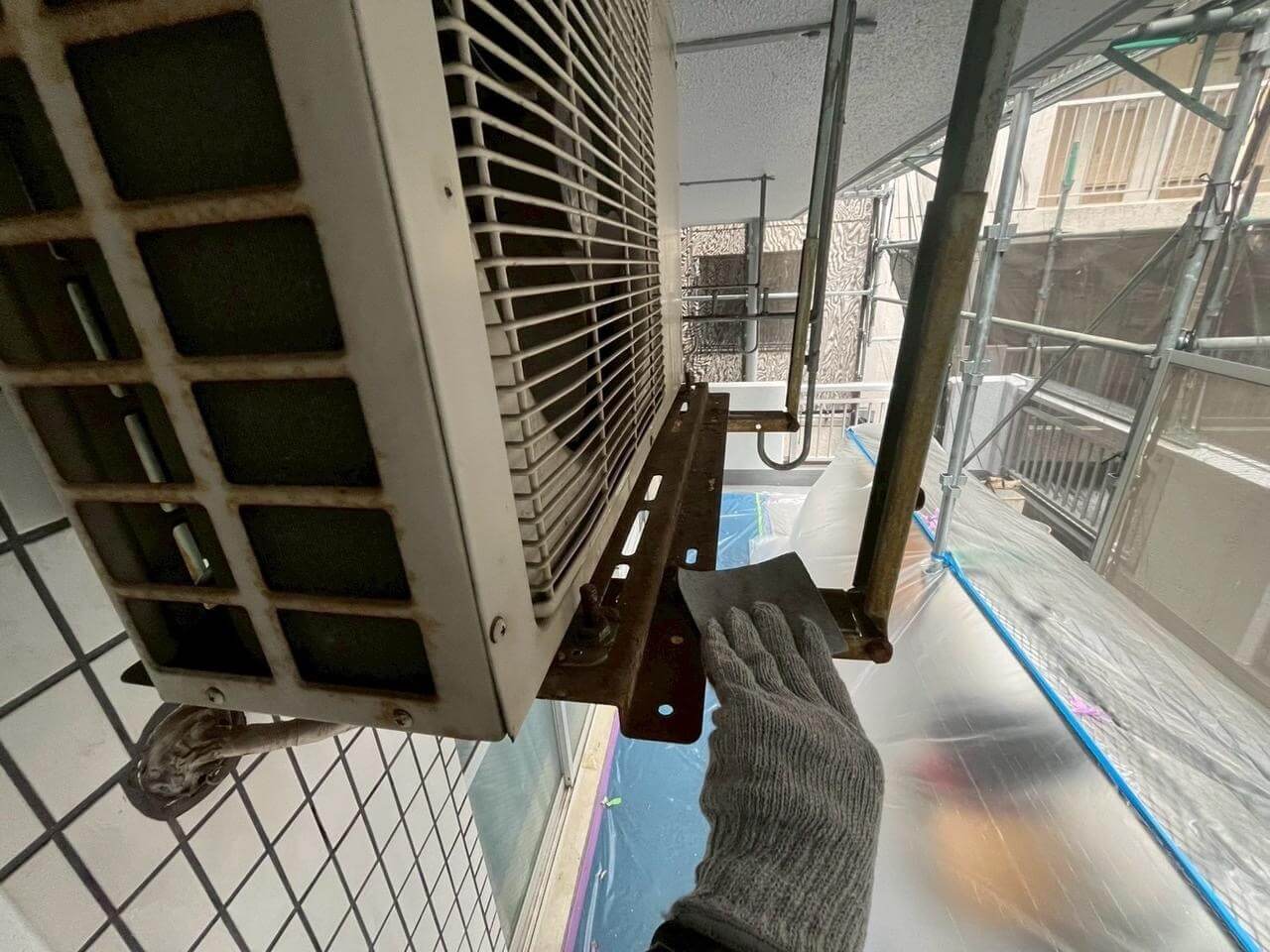 東京都国分寺市本町での付帯部塗装工事(室外機吊り金具塗装工事)