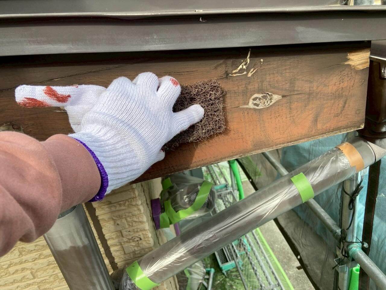金属系の破風板の場合、サビ止めを塗布してから塗装を行います。