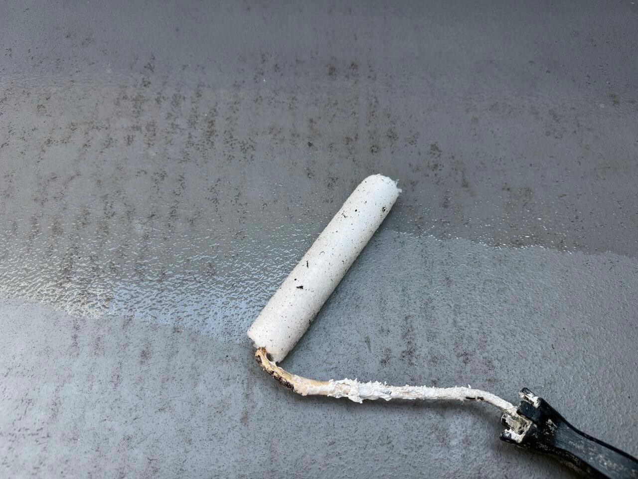 施工方法: 下地にウレタン樹脂を塗布し、乾燥させることで防水層を作ります。