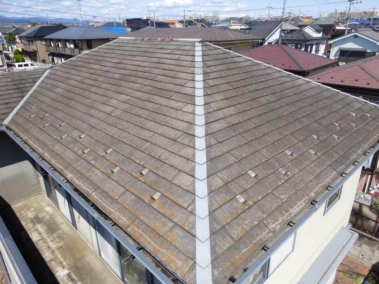 東京都昭島市田中町での屋根塗装工事(ウルトラSi・オータムレッド)