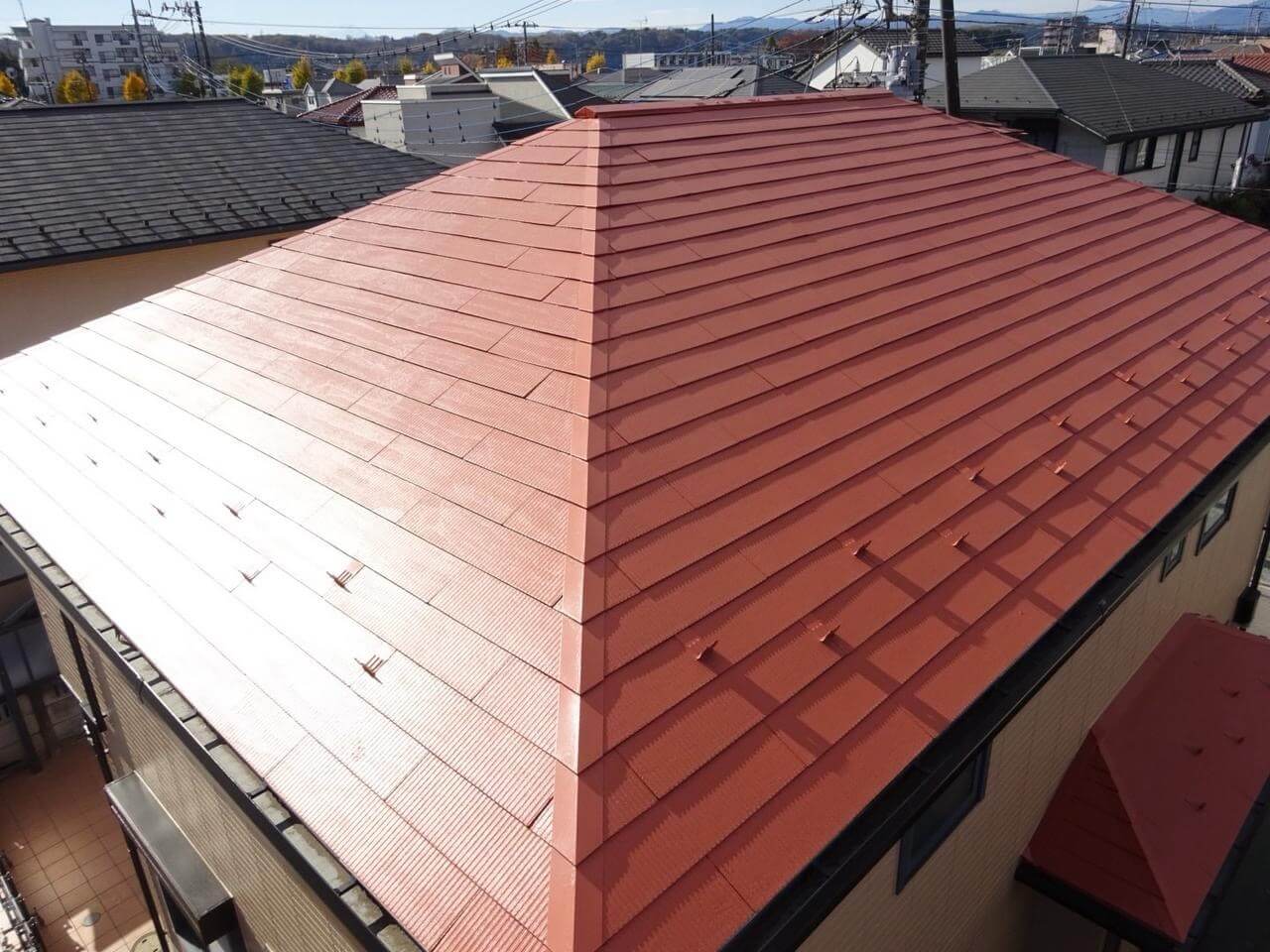 東京都昭島市田中町での屋根塗装工事(ウルトラSi・オータムレッド)のご紹介です!