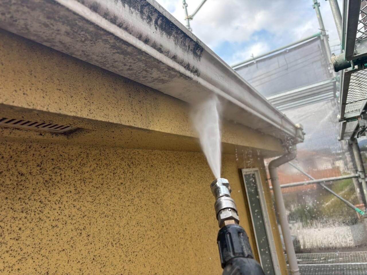 4. 外壁、付帯部と徐々に下へ高圧洗浄を行います