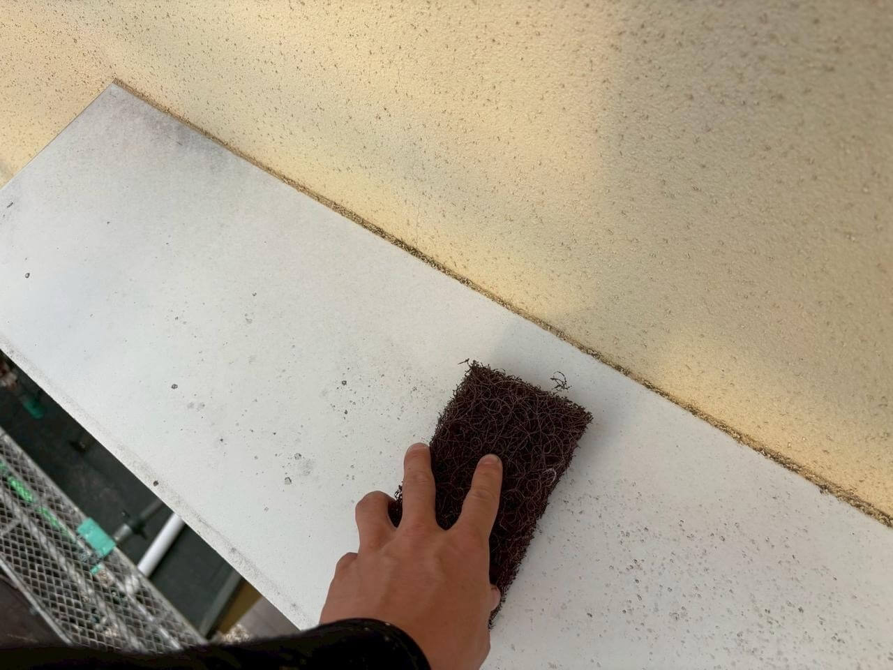 目粗しは、ケレンの程度が最も軽い状態の「ケレン4種」にあたる工程です。塗料の密着性を高めるのが主な目的で、鉄部の表面に細かな傷を付けることにより、塗料の接触面積を広げます。