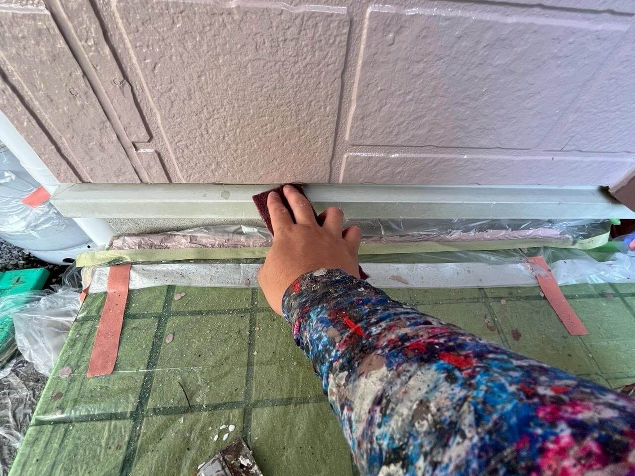目粗しは、ケレンの程度が最も軽い状態の「ケレン4種」にあたる工程です。塗料の密着性を高めるのが主な目的で、鉄部の表面に細かな傷を付けることにより、塗料の接触面積を広げます。