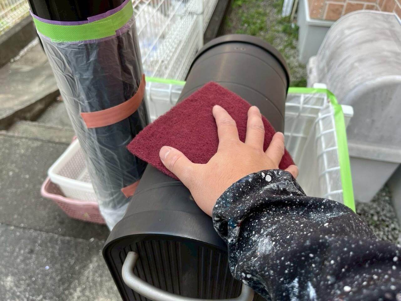 目粗しは、ケレンの程度が最も軽い状態の「ケレン4種」にあたる工程です。塗料の密着性を高めるのが主な目的で、鉄部の表面に細かな傷を付けることにより、塗料の接触面積を広げます。