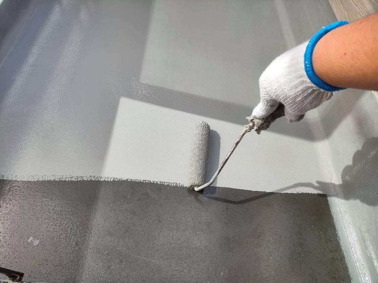 施工方法: 下地にウレタン樹脂を塗布し、乾燥させることで防水層を作ります。