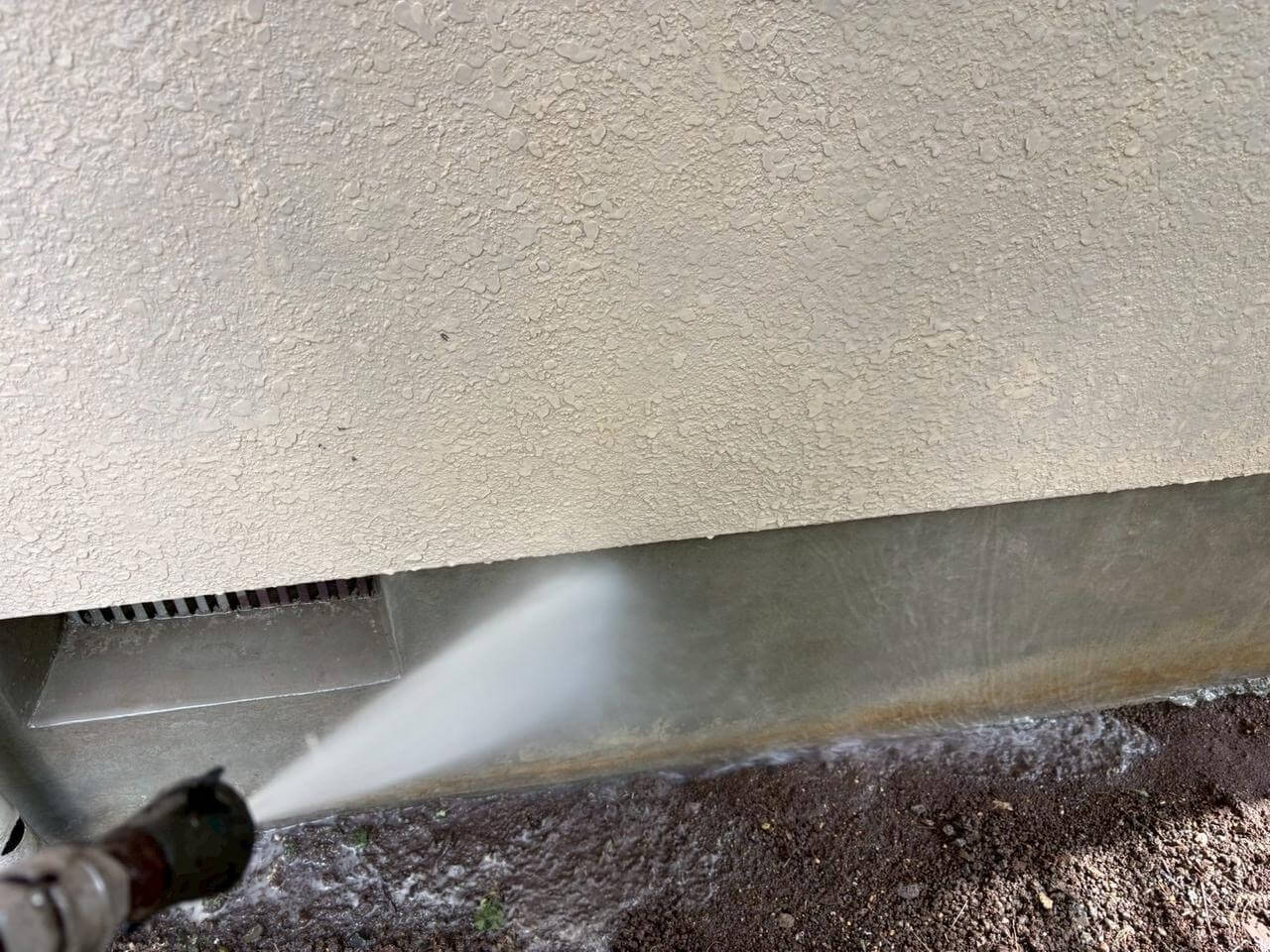 4. 外壁、付帯部と徐々に下へ高圧洗浄を行います