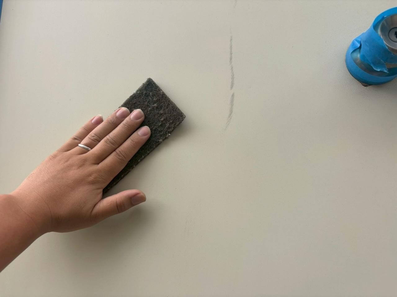 目粗しは、ケレンの程度が最も軽い状態の「ケレン4種」にあたる工程です。塗料の密着性を高めるのが主な目的で、鉄部の表面に細かな傷を付けることにより、塗料の接触面積を広げます。