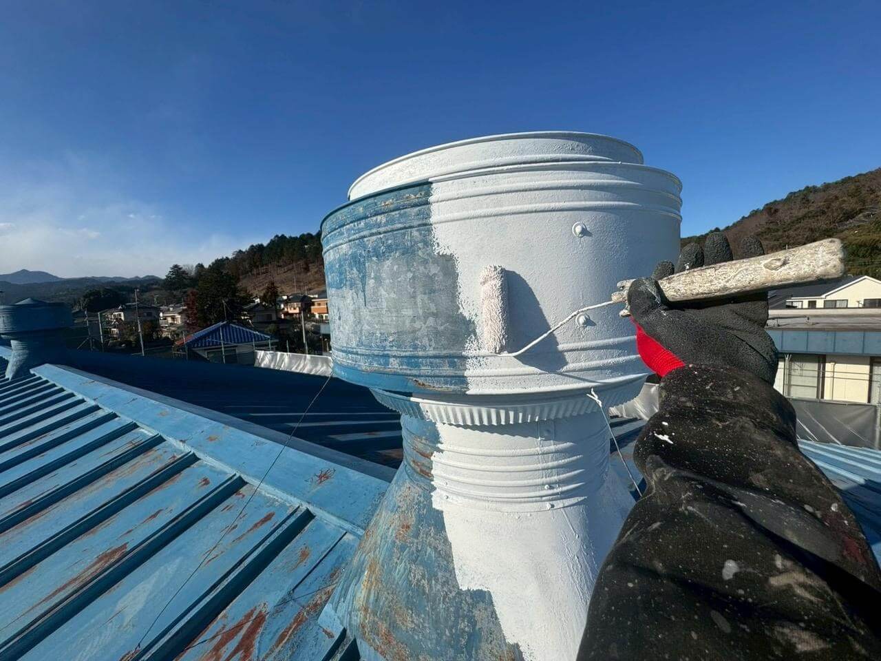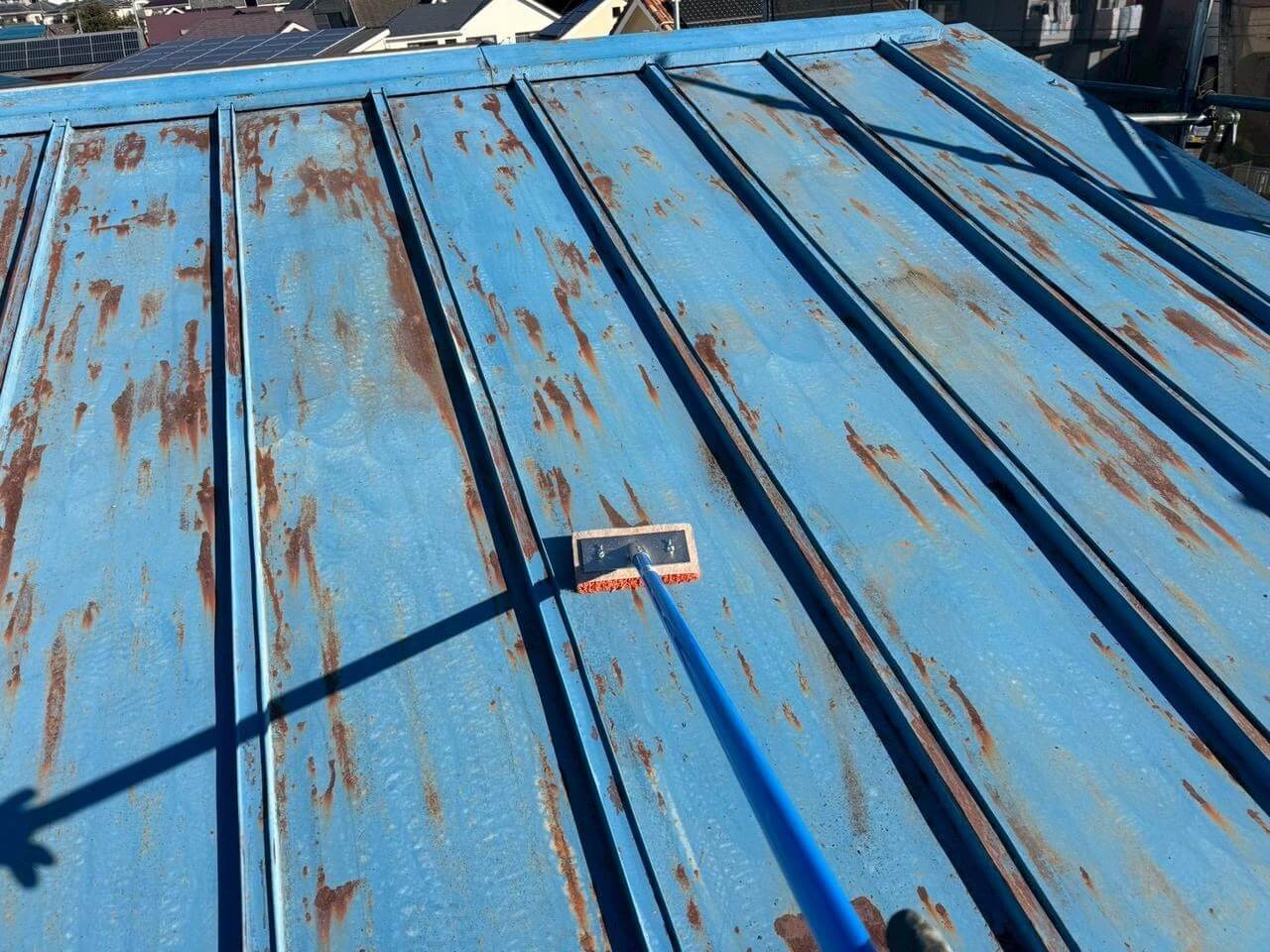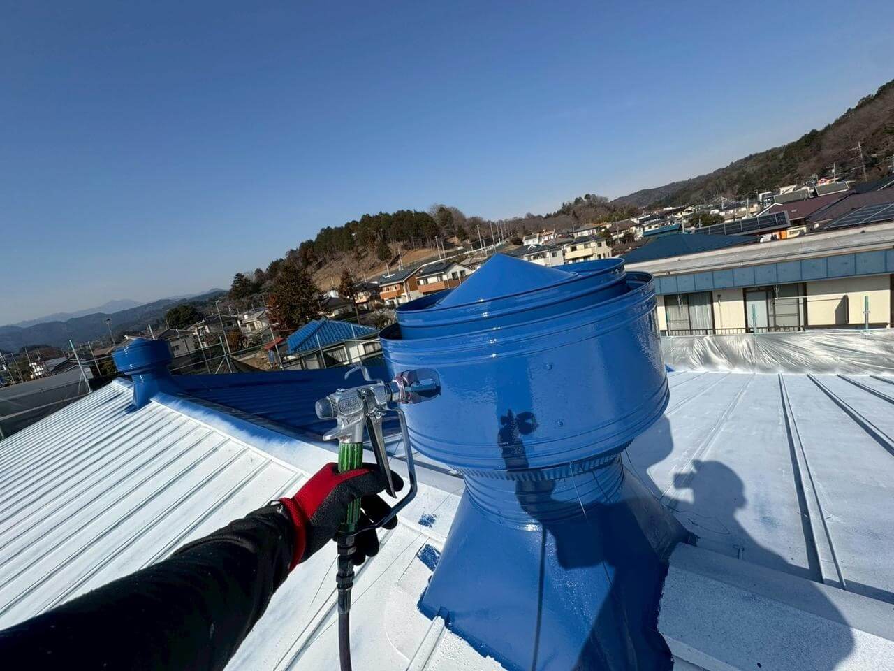 東京都西多摩郡日の出町平井での屋根塗装工事(SPパワーサーモSi・ブルー)のご紹介です!