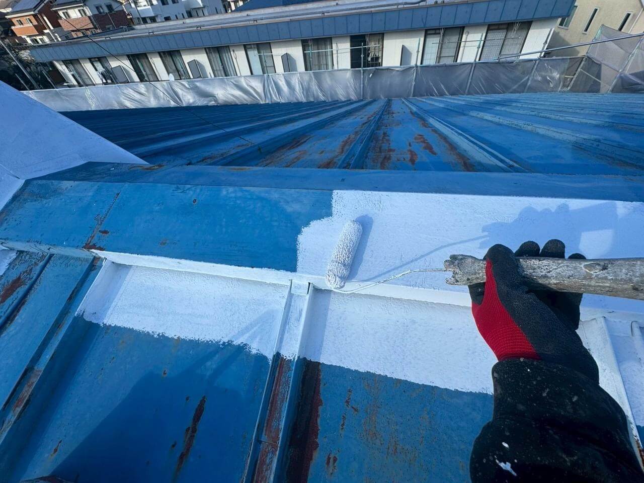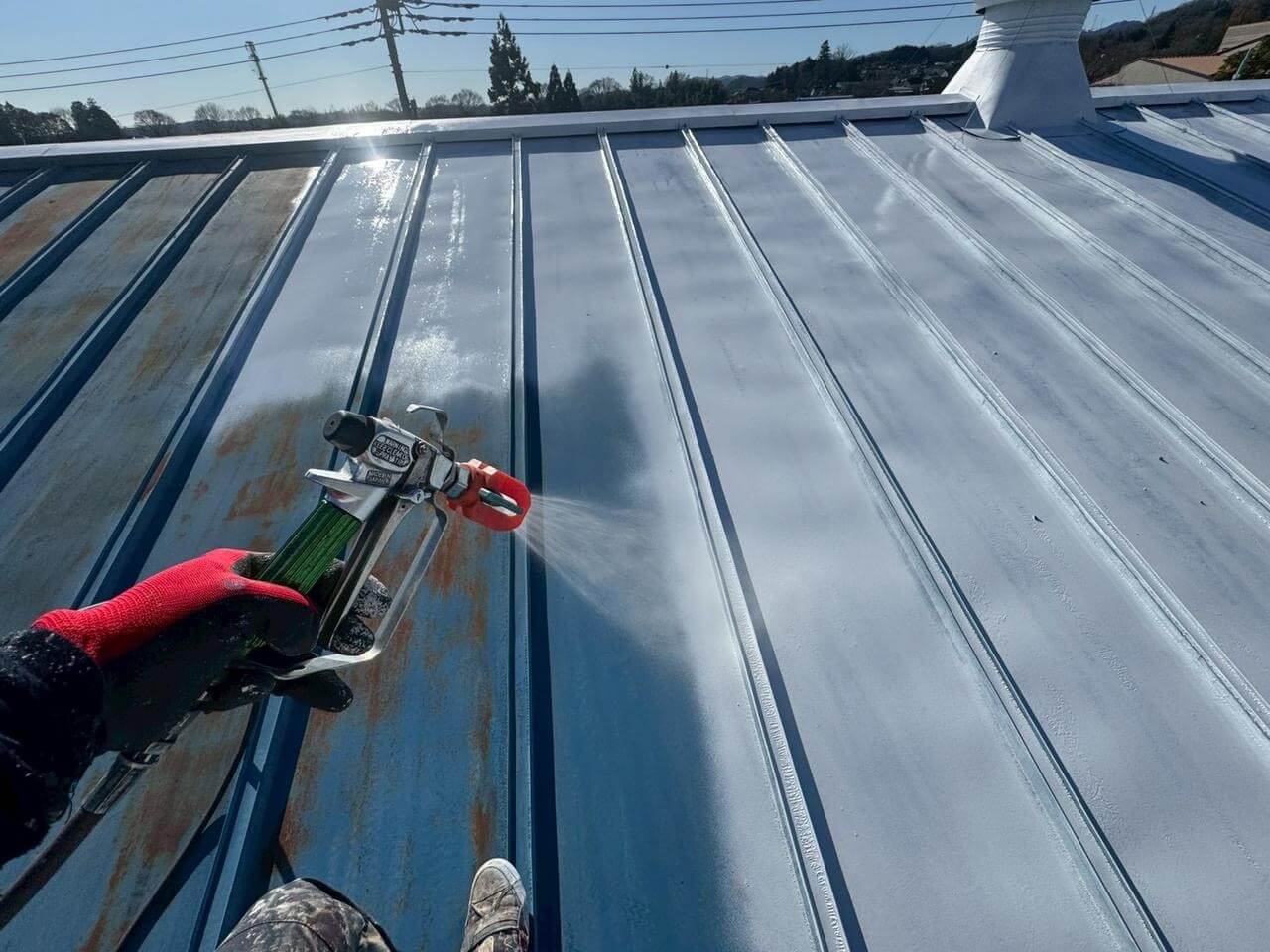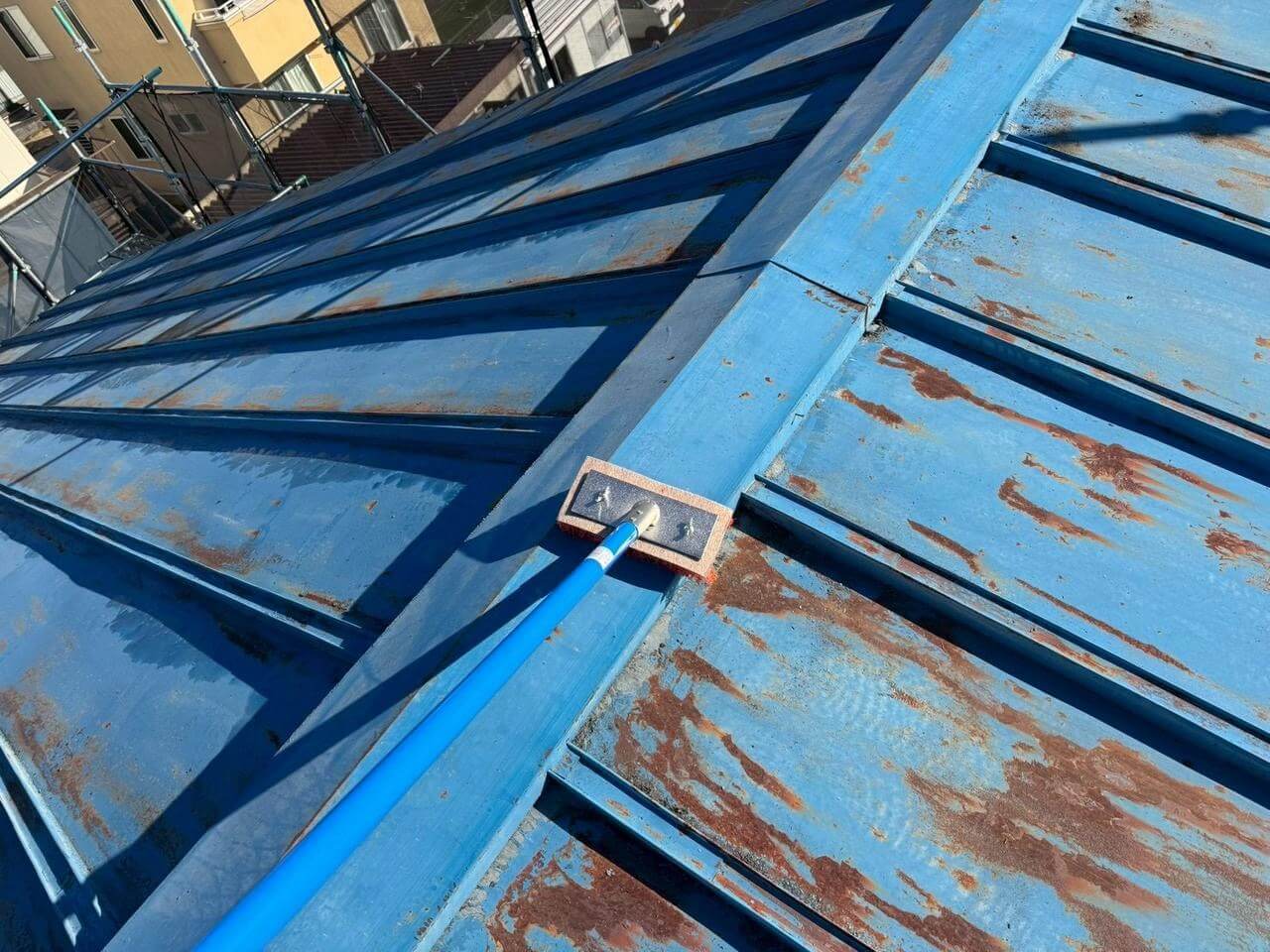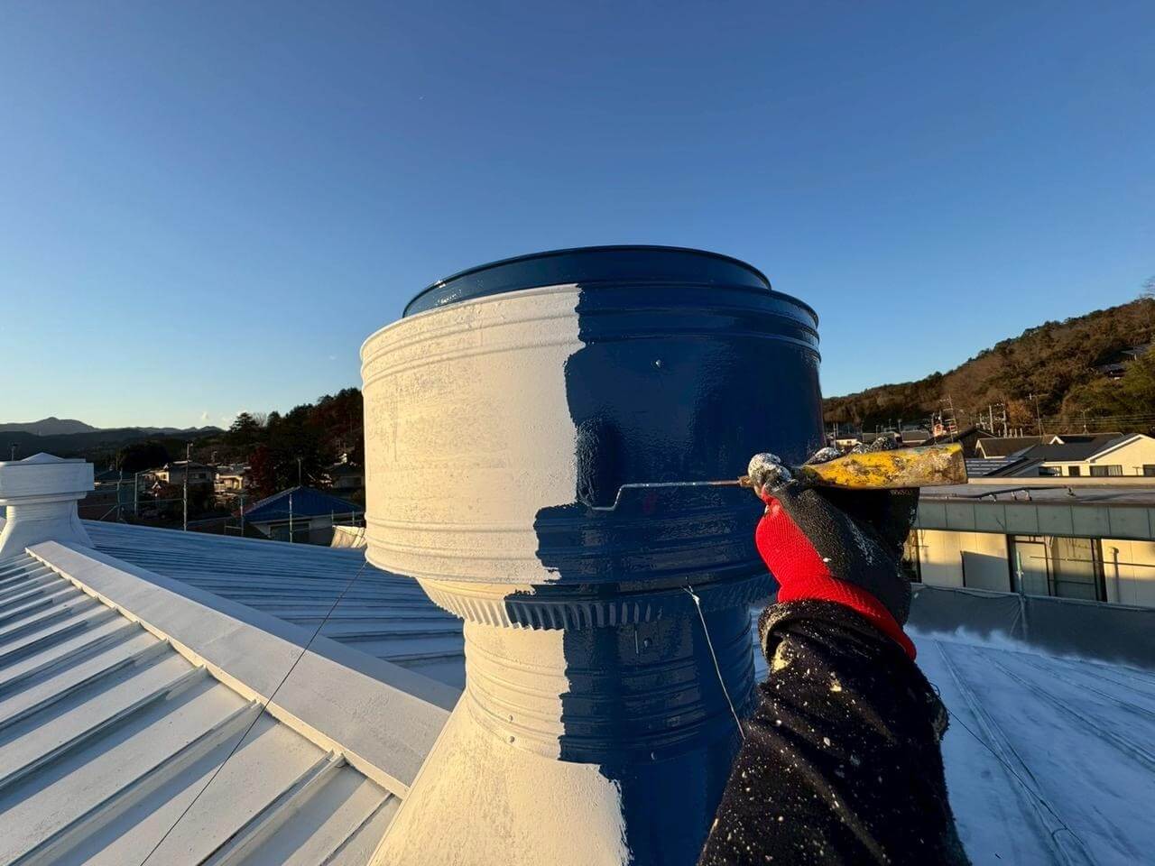 東京都西多摩郡日の出町平井での屋根塗装工事(SPパワーサーモSi・ブルー)のご紹介です!