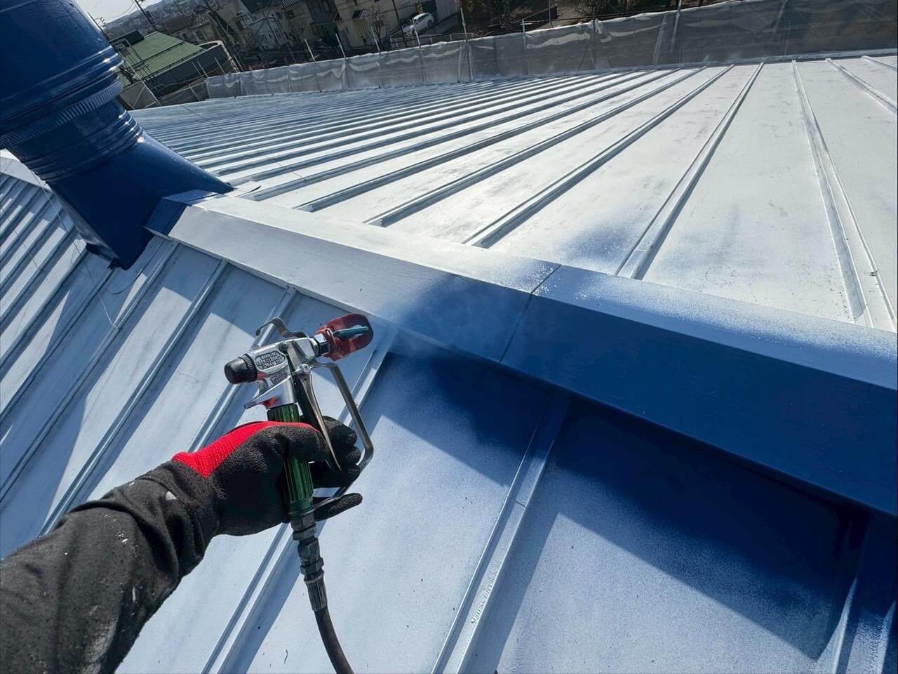 東京都西多摩郡日の出町平井での屋根塗装工事(SPパワーサーモSi・ブルー)