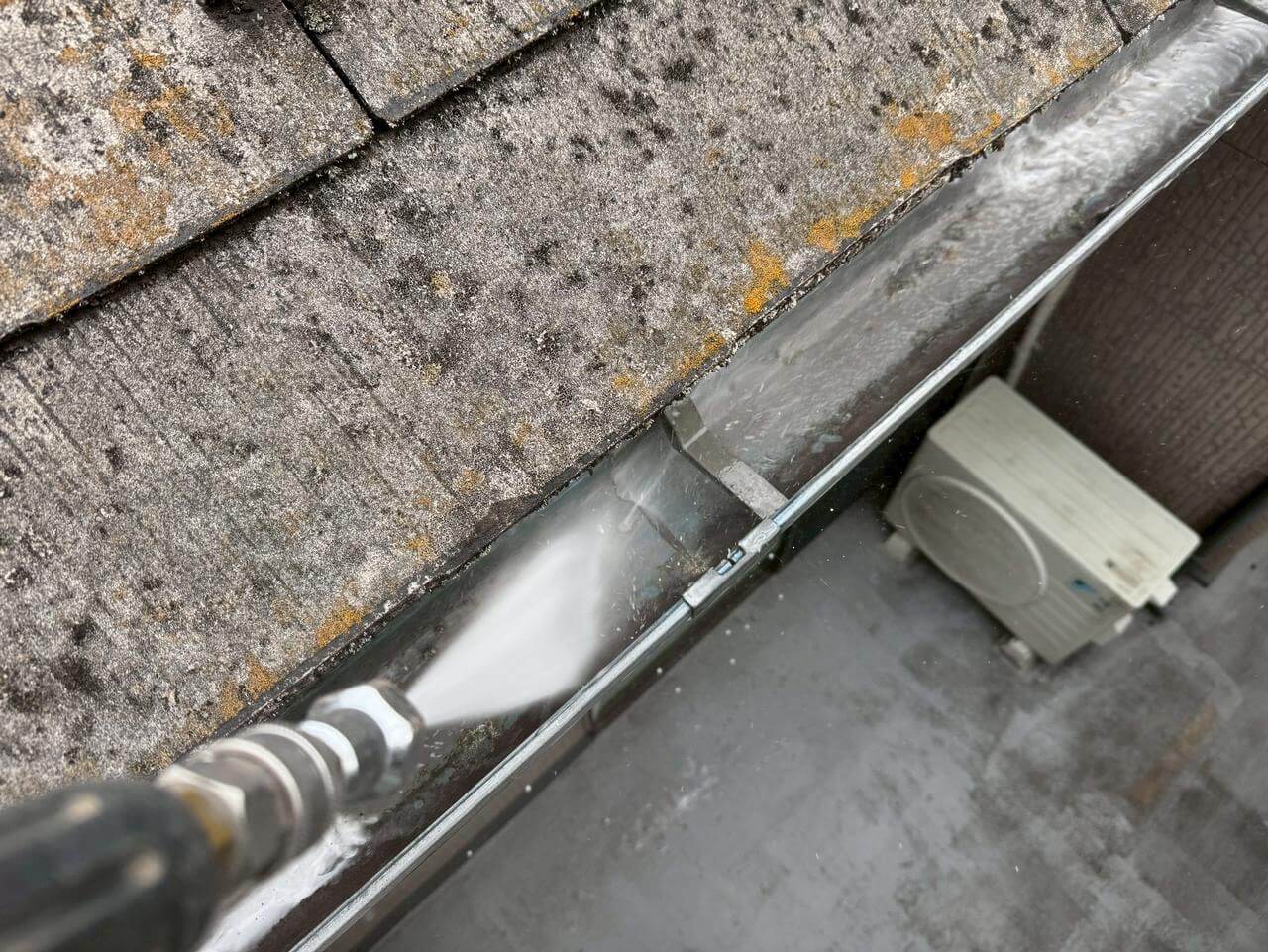 長年の汚れが溜まり、水が流れにくい状況となる為、高圧洗浄で洗い流します。