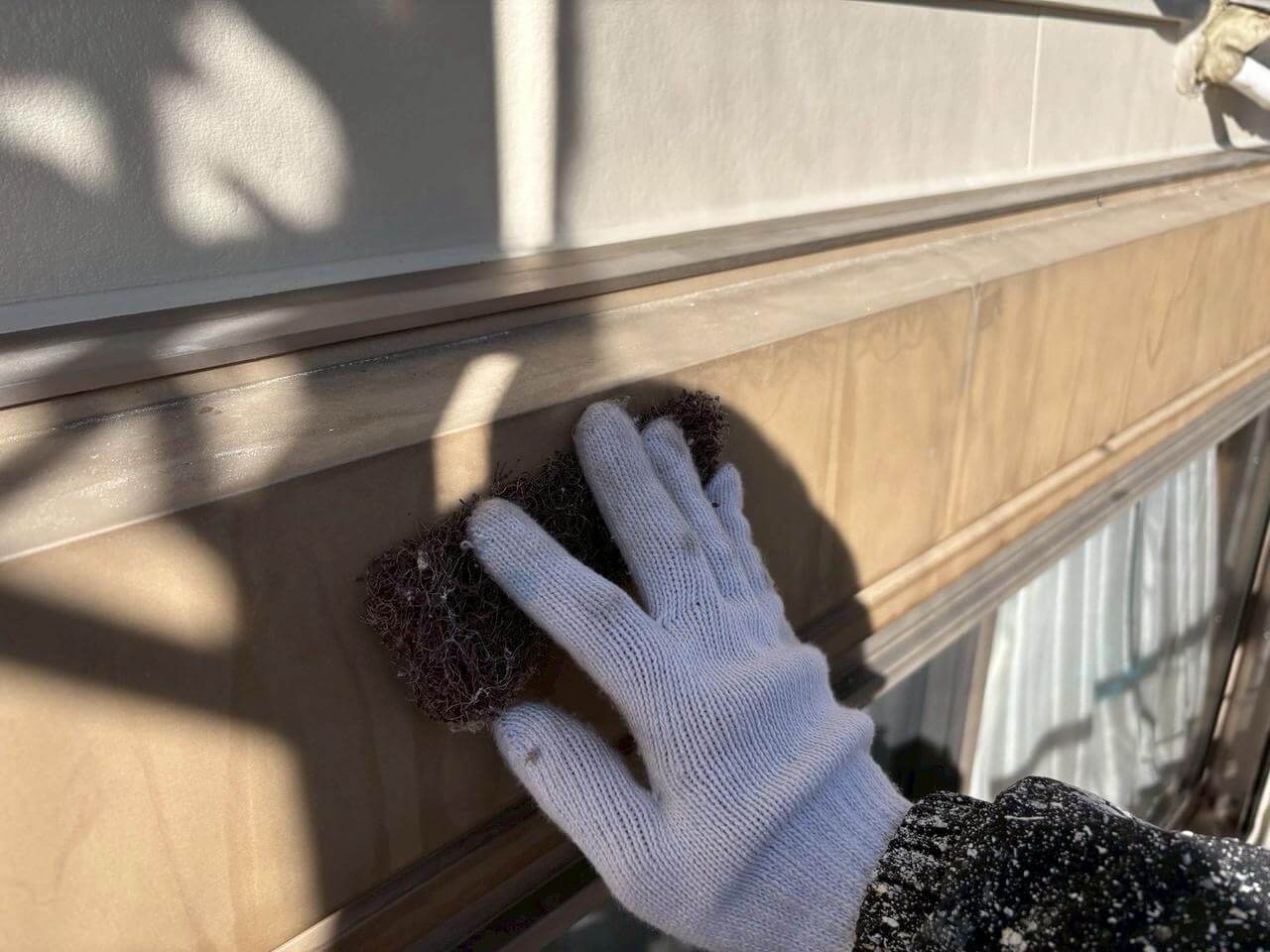 目粗しは、ケレンの程度が最も軽い状態の「ケレン4種」にあたる工程です。塗料の密着性を高めるのが主な目的で、鉄部の表面に細かな傷を付けることにより、塗料の接触面積を広げます。