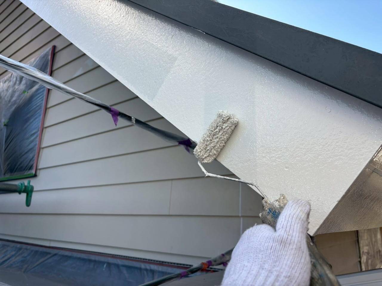 東京都青梅市河辺町にて付帯部塗装工事(庇板金塗装工事)