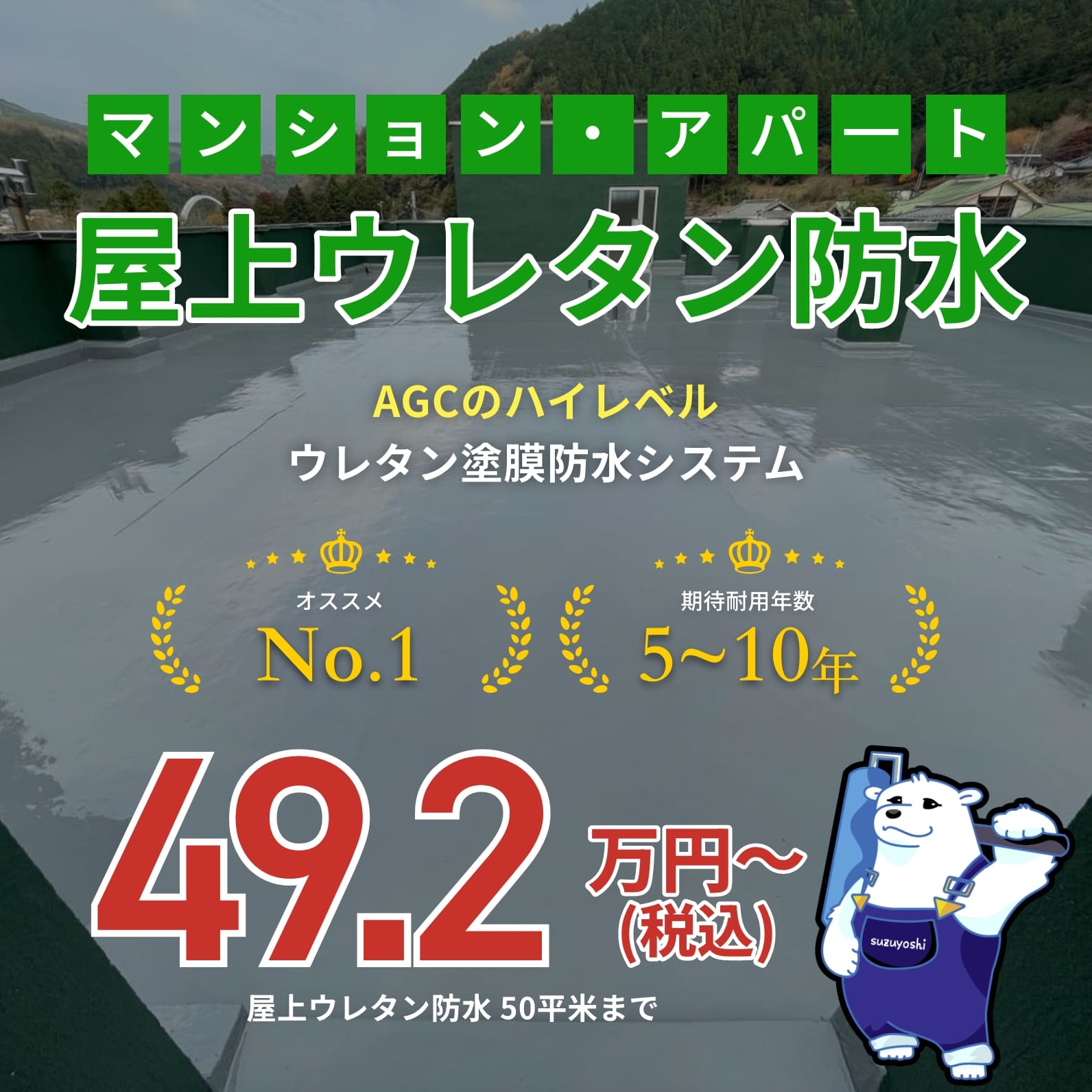マンション・アパート 屋上ウレタン防水 AGCのハイレベル ウレタン塗膜防水システム