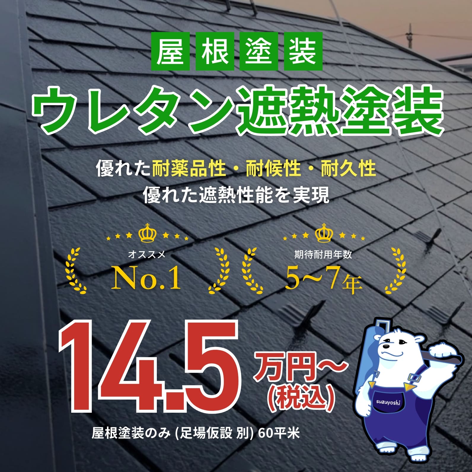 外壁塗装ウレタン遮熱 優れた耐薬品性・耐候性・耐久性優れた遮熱性能を実現